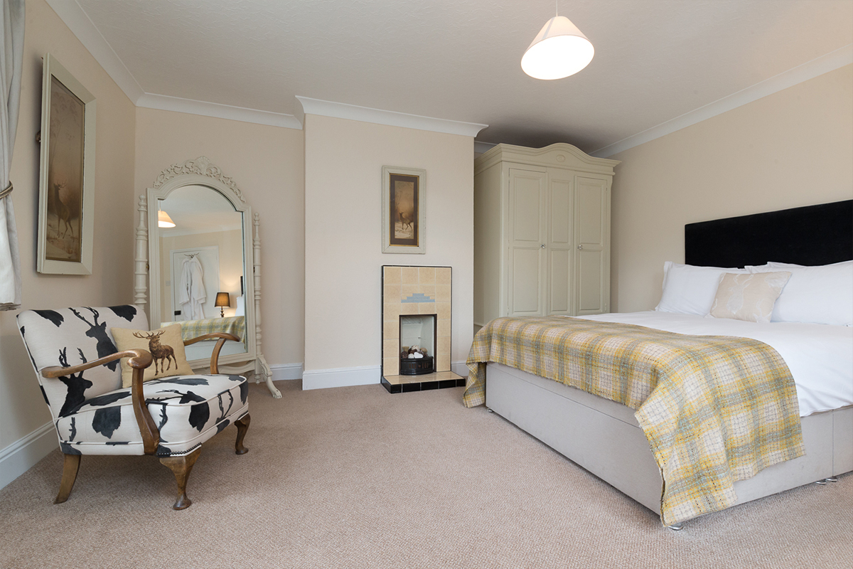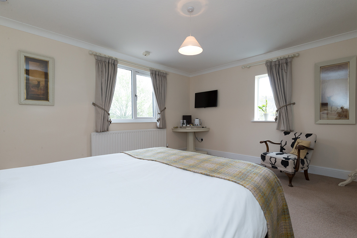 Dubthorne is a fantastically spacious room with a classic country style with 17th century stag pictures.